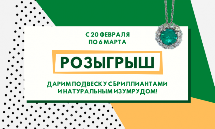 Куда Когда устраивает новый розыгрыш с невероятно простыми условиями. Приз – золотая подвеска с натуральным изумрудом и 12 природными бриллиантами! Заинтересованы?